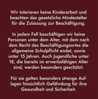 Unsere Verpflichtung zur Einhaltung von Menschenrechten und Umweltstandards kannst du in unserem Code of Conduct und unser Human Rights Due Diligence Policy genau nachlesen.