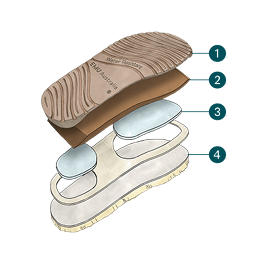 Wasserfestes Doubleface aus australischem Lammfell. Lammfell ist atmungsaktiv und hält die Füße kuschelig warm im Winter und angenehm kühl im Sommer. Verstärkte Fersenmulde aus Wildleder für ein besseres Tagegefühl und Halt. Weiche EVA-Zwischensohle für höheren Komfort und Festigkeit. Strapazierfähige, verschleißarme und biegsame Gummiaußensohle. Extrastarke Doppelnaht für mehr Halt.