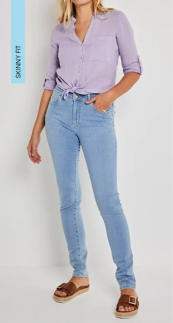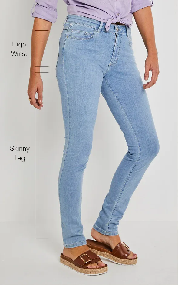 Skinny Fit ist eine Hose mit hoher Taille und enger Passform. Die Hose wird am Oberschenkel verbunden und das Hosenbein ist vom Knie bis zum Knöchel schmal.