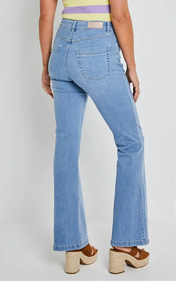 Flare Fit ist eine hoch taillierte Hose mit ausgestelltem Bein. Die Hose ist an den Oberschenkeln eng anliegend und das Hosenbein ausgestellt ab dem Knie. Dieses Modell war in den 70er Jahren ein echter Trend und ist komplett zurück.